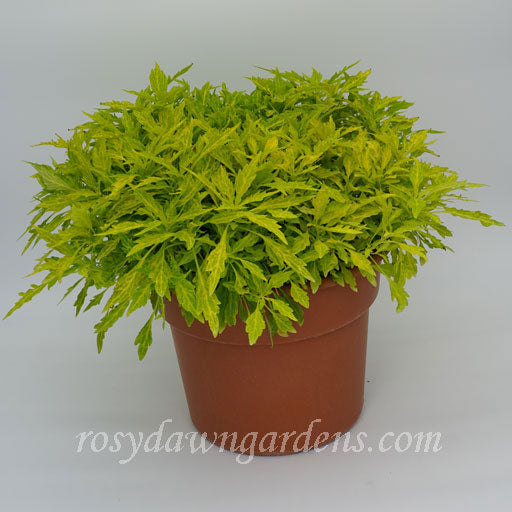 From Ball Floraplant's FlameThrower™ series, this coleus features bright foliage colors in a compact plant, ideal for small pots and mixed containers. Its jagged leaves of lime green are the newest addition to the series. This coleus has light coloration for contrast and a shaggy habit for adding interest to your plantings. Sun tolerant.