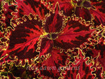 Volcanica™ ‘Solar Flare’ features a deep, nearly black burgundy leaf with bright red ribs and veining. The ultra-fancy edge is rimmed with bright gold for high-contrast eye appeal! Part of the Volcanica™ Collection of vigorous coleus, this variety brings a new pattern, new leaf shape and bright colors for sun and shade. A Ball FloraPlant introduction.
