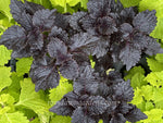'Shiny Shoes' is not just another dark purple coleus. The leaves are shiny, like patent leather shoes! Growth habit is tidy and compact. Reportedly it was first discovered growing under a bench in the Biltmore Gardens Conservatory.