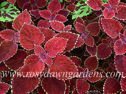 Very similar to 'Trailing Garnet Robe' in habit and leaf shape, this coleus is a deep brick red with a thin chartreuse edge. Very nice for setting off combinations, especially those that contain other red plants. Trails up to 30".