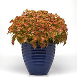 A Ball FloraPlant Introduction. ‘Peach Frizzle’ features striking peachy/pink foliage with ruffled lime green edges. The color of the foliage will change depending on light intensity and humidity. Compact grower and sun tolerant.