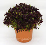 Tiny-leaved duckfoot type coleus of the deepest purple color imaginable - nearly black in good light. Very dense and refined, it is excellent for edging beds or for tumbling over the edge of a pot or an urn. Fabulous hanging basket plant! During short winter days or in low light the plant might show more green in the leaf. Sun tolerant.