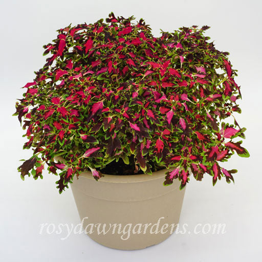 Terra Nova® 'Pink Poodle'is a self-branching Coleus with a low, dense habit. Height is 12", but the spread is double that! Very showy, hot pink leaves are edged in green and black. It is already a top seller in Japan, and we are happy to now offer it to our customers. Use in containers, baskets, urns, or border edges in part shade.